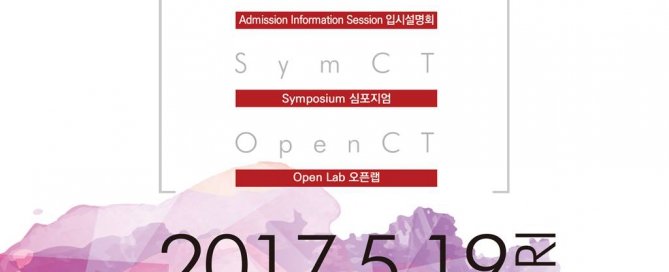KAIST 문화기술대학원의 모든 것!! CTScape 2017에서 알려드립니다! 참가대상: 학생, 학부모, 기타 문화기술대학원에 관심있는 모든 분들 1. 일시 : 2017. 5. 19 (월), 09:00 ~ 18:00 2. 장소 : KAIST 대전캠퍼스 N25(문화기술대학원), N25가든 3. 주요프로그램 및 [...]