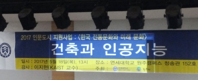 Prof. Lee was invited from Yonsei University (Wonju) on May 18th, 2017. The topic of the invited talk was "Architecture and Artificial Intelligence."