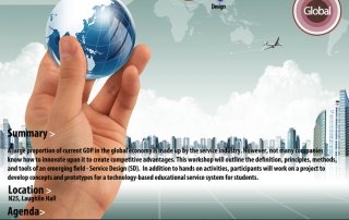 (Jan. 27 - Feb. 1, 2012, GSCT, KAIST, Daejeon, Korea) A large proportion of current GDP in the global economy is made up by the service industry. However, not many companies know how to innovate upon it to create competitive advantages. This workshop will outline the definition, principles, methods, and tools of an emerging field - Service Design. In addition to hands-on activities, participants will [...]